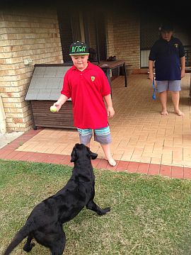 Tristan with Billy, a 10yr old Maltese X, a 3 week service.